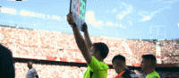 第15分钟,赫拉德-马丁犯规,裁判出示黄牌警告